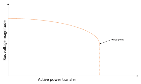 Steady state analysis is carried out as the first step using PV and QV curves[3]. PV curves are used as a screening tool to assess the voltage stability margin and identify the weakest buses in the power system under various contingencies. It involves monitoring of the bus voltages as the real power transfer increases. The knee-point of the curve is the maximum power transfer point and the steady state voltage stability limit, beyond which the load flow calculation diverges.
