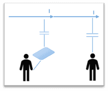 Electrostatic coupling occurs when a conductive object or person is near a conductor with a raised potential and the object is in contact with the earth.